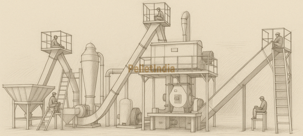 PelletIndia’s 5 TPH Fully Automated Biomass Pellet Plant is a cutting-edge facility designed for high efficiency, minimal human intervention, and consistent pellet quality. This real-world setup integrates smart automation, heavy-duty equipment, and an energy-efficient layout to ensure 24/7 operation with only 2 operators per shift. 🔧 Key Machinery in the 5 TPH Fully Automated Pellet […]