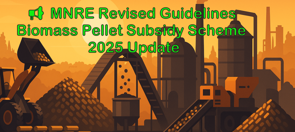 Continue readingπ Description The Ministry of New and Renewable Energy (MNRE) has issued revised guidelines dated 27th June 2025 under the Biomass Programme of the National Bioenergy Programme (2021β2026 Phase-I). These changes simplify documentation, enhance clarity on eligibility, update performance benchmarks, and strengthen monitoring mechanisms for briquette and pellet manufacturing plants. Notably, this update aligns with […]